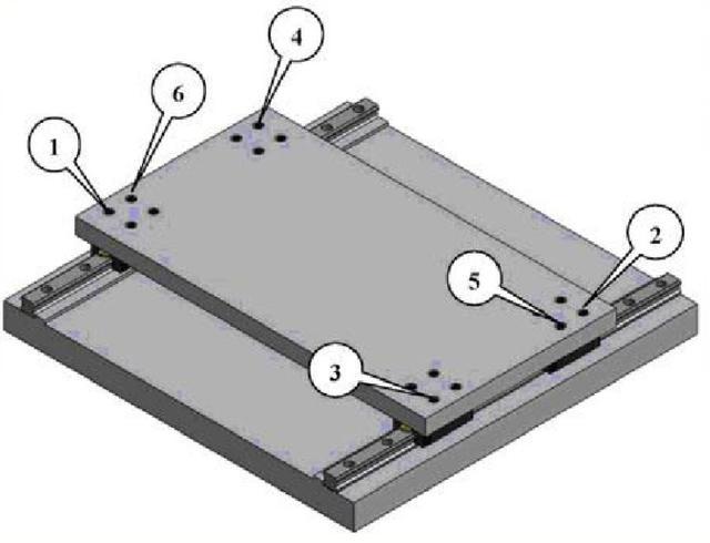 (4)按照图示的顺序把移动平台安装到导轨的滑块上,推动平台看是否顺畅有无卡滞现象,如果有需要对导轨滑块的螺钉进行调整直至顺畅滑行。