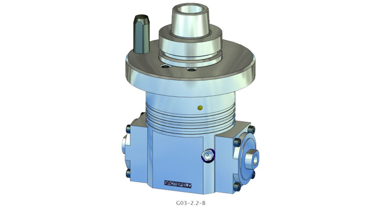 G03 系列角头最多配备 4 个加工主轴。所有刀具座的主轴转动方向始终与驱动转动方向相同。驱动速度以 1:1,55 的比率传输到工具容座。间歇运转的主轴最高转速为18,000 1/min。