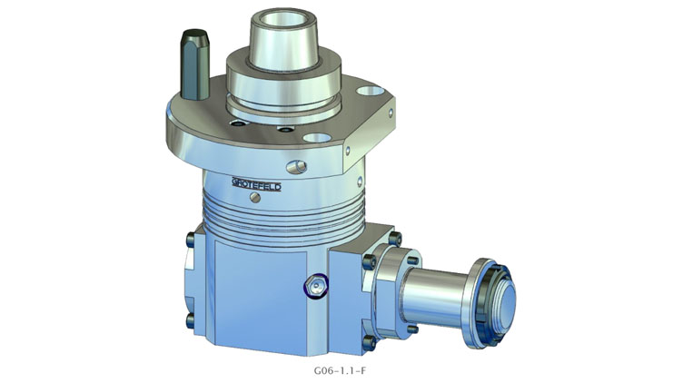 G06-1.1 系列角头具有连续加工主轴。驱动速度以 1:1.55 的比例传递到刀架。间歇运行时主轴最高转速可达 20,000 rpm。