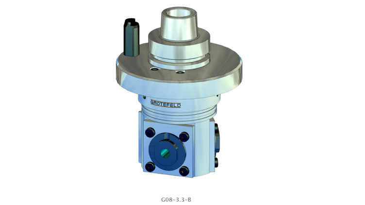G08 系列角头具有三个加工主轴,特别适用于在狭小空间内使用较长钻头的情况。角头中心到钻架末端的距离仅为40mm。