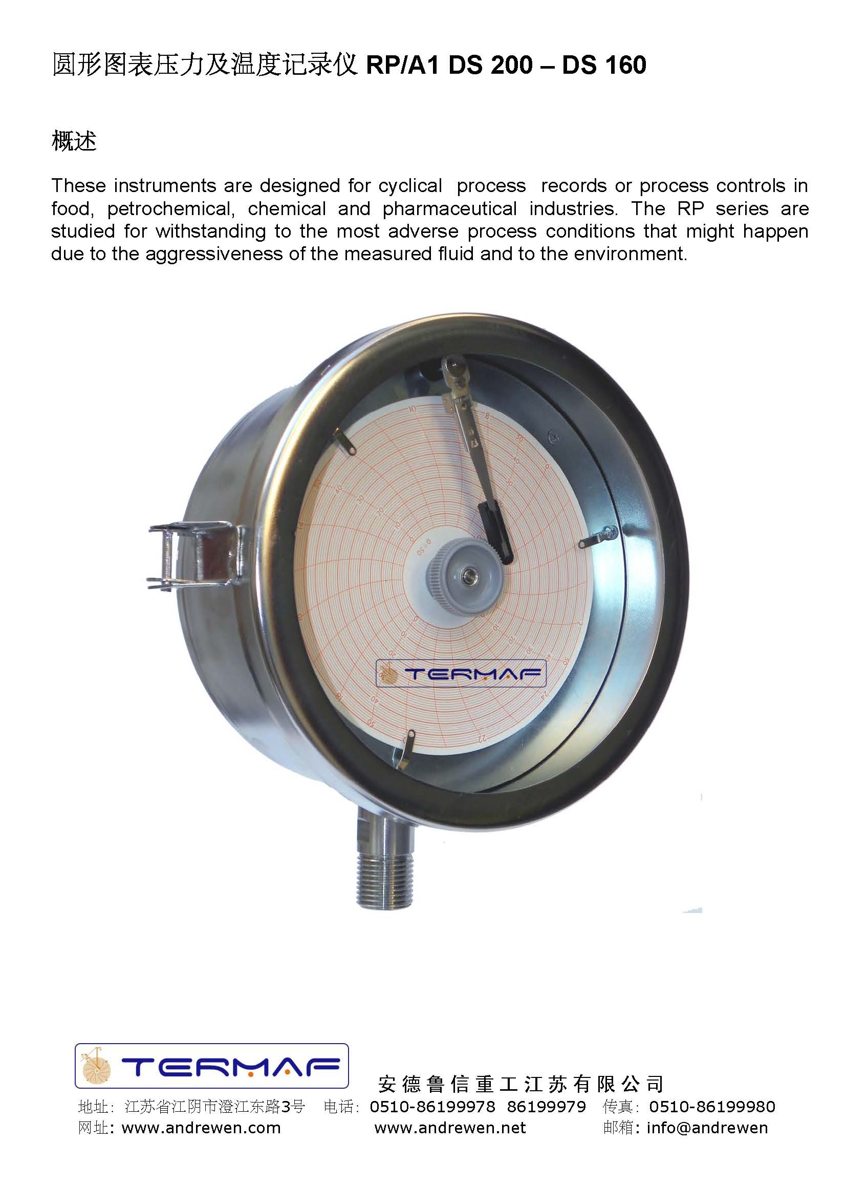 圆形图表压力及温度记录仪 RP/A1 DS 200 – DS 160-意大利TERMAF