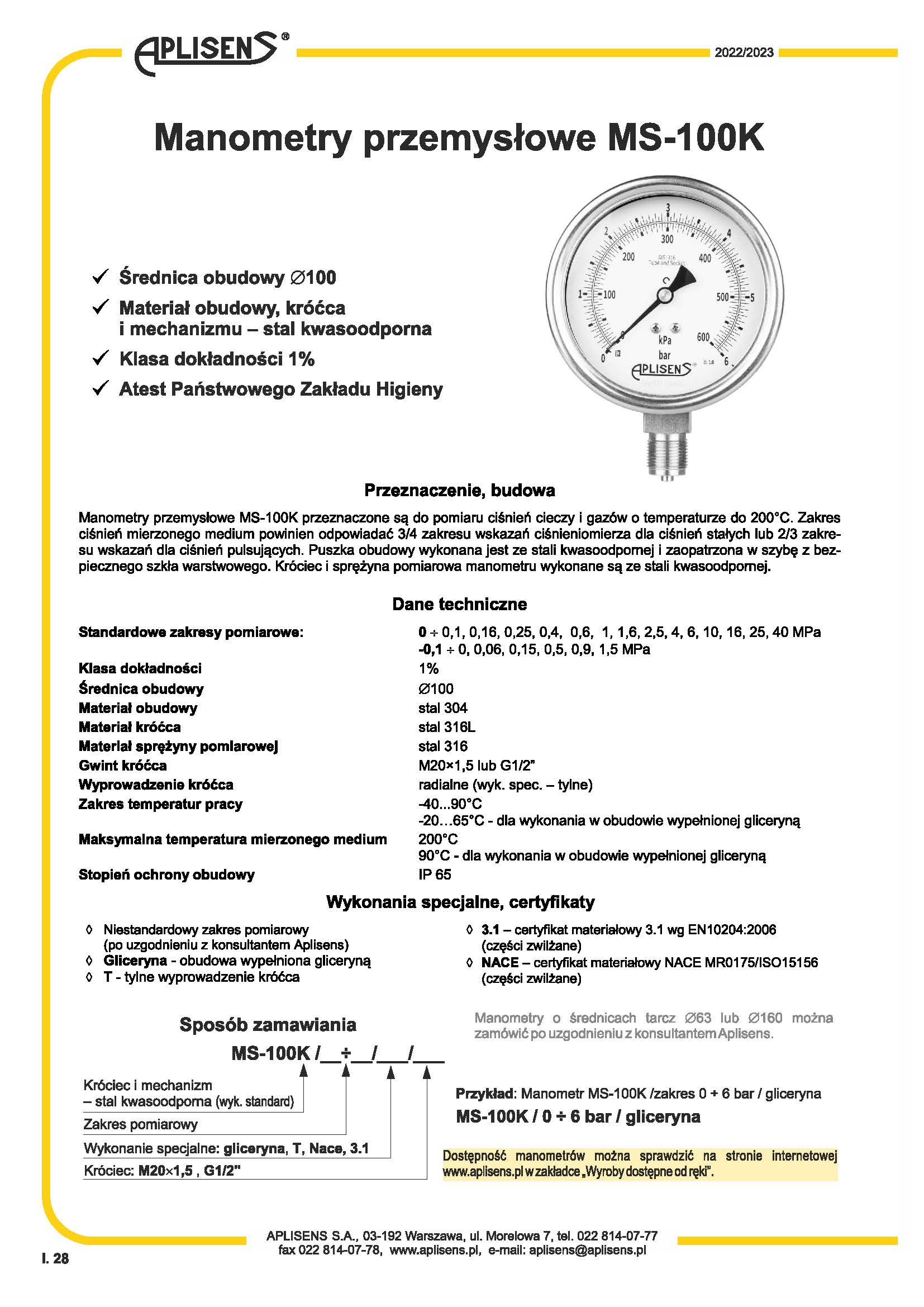 外壳直径 O 100介质测量:污染、粘稠和凝结具有化学腐蚀性低温或高温需要卫生连接