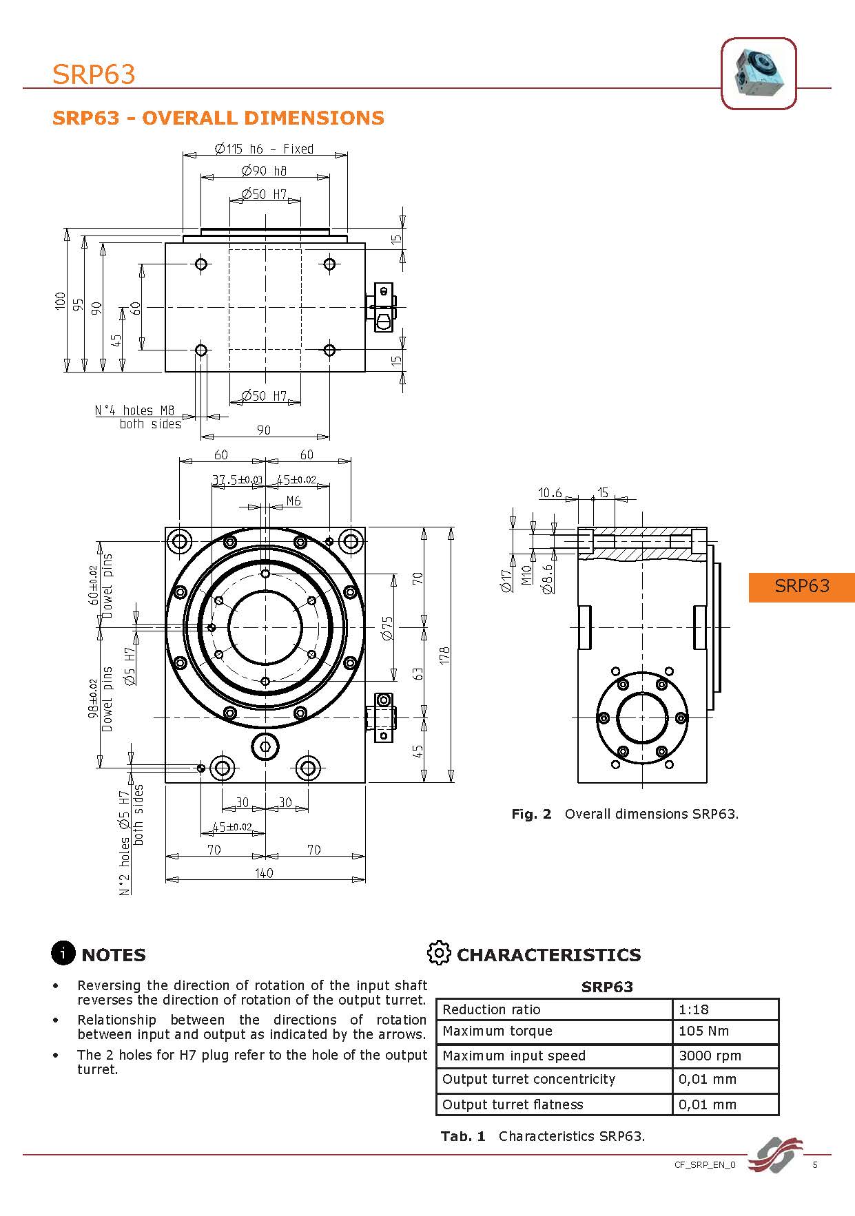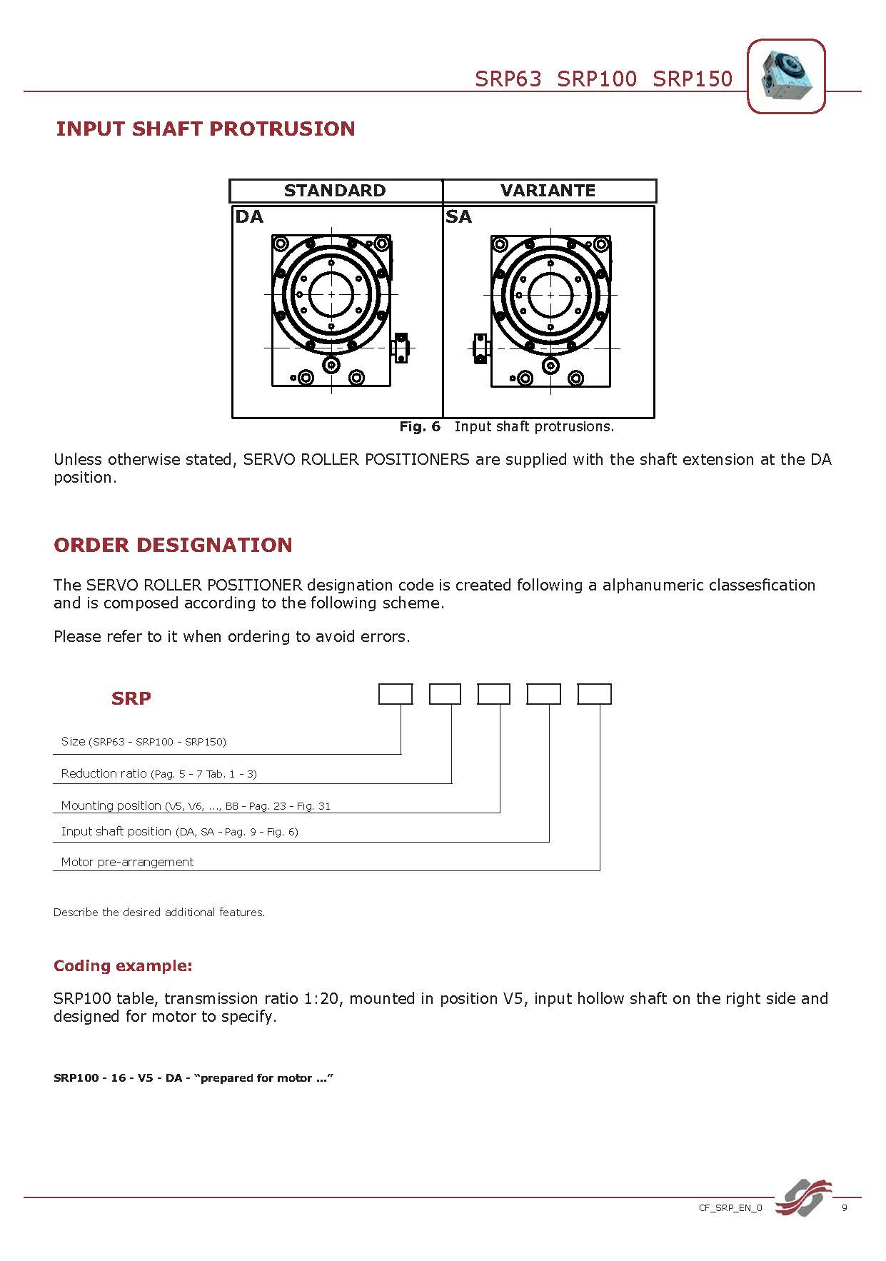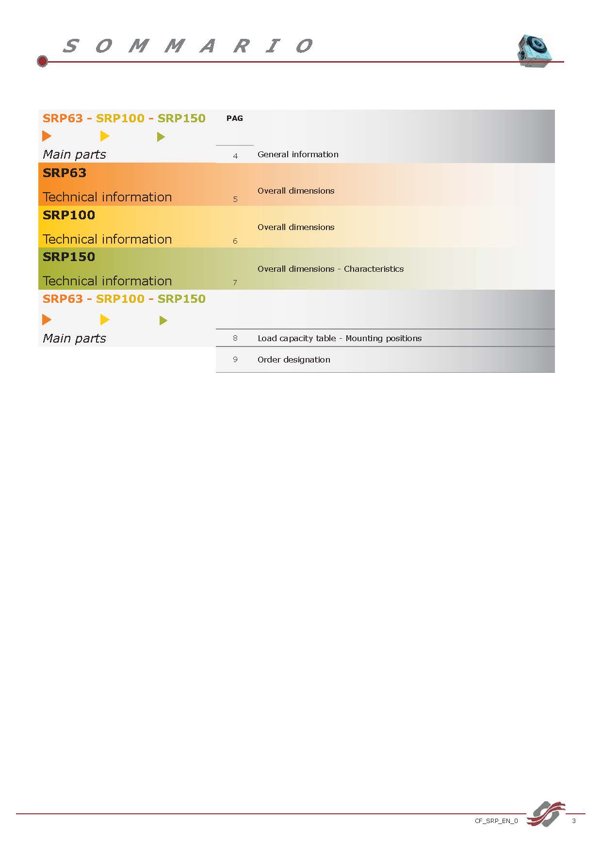 | 球面凸轮标准型号: | SRP63 - SRP100 - SRP150 |