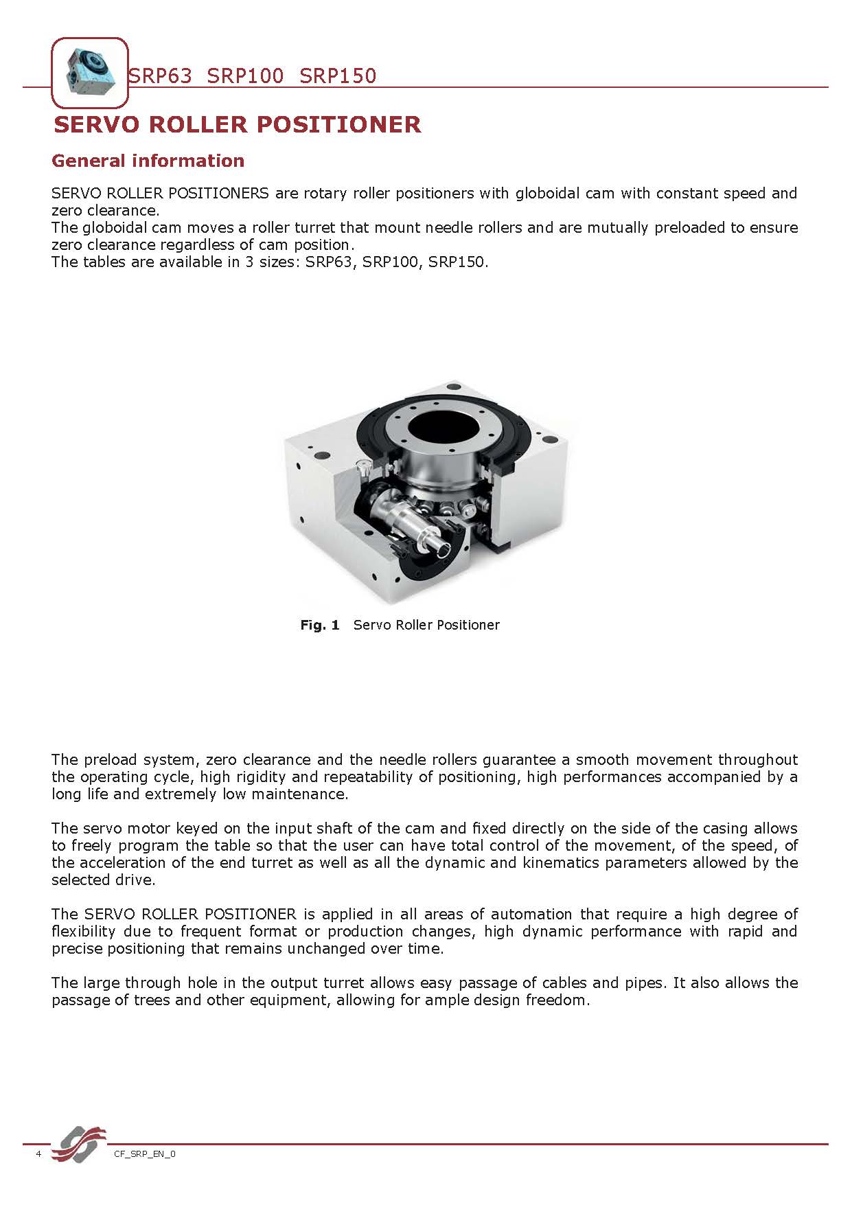 伺服滚子定位器 SRP 基于简单而有效的设计,其特点是紧凑的铝制外壳具有易于组装的平坦表面,输出刚性转动转塔,带有由一对超大径向滚子轴承支撑的宽中心通孔和精确的, 预加载等速球面凸轮。