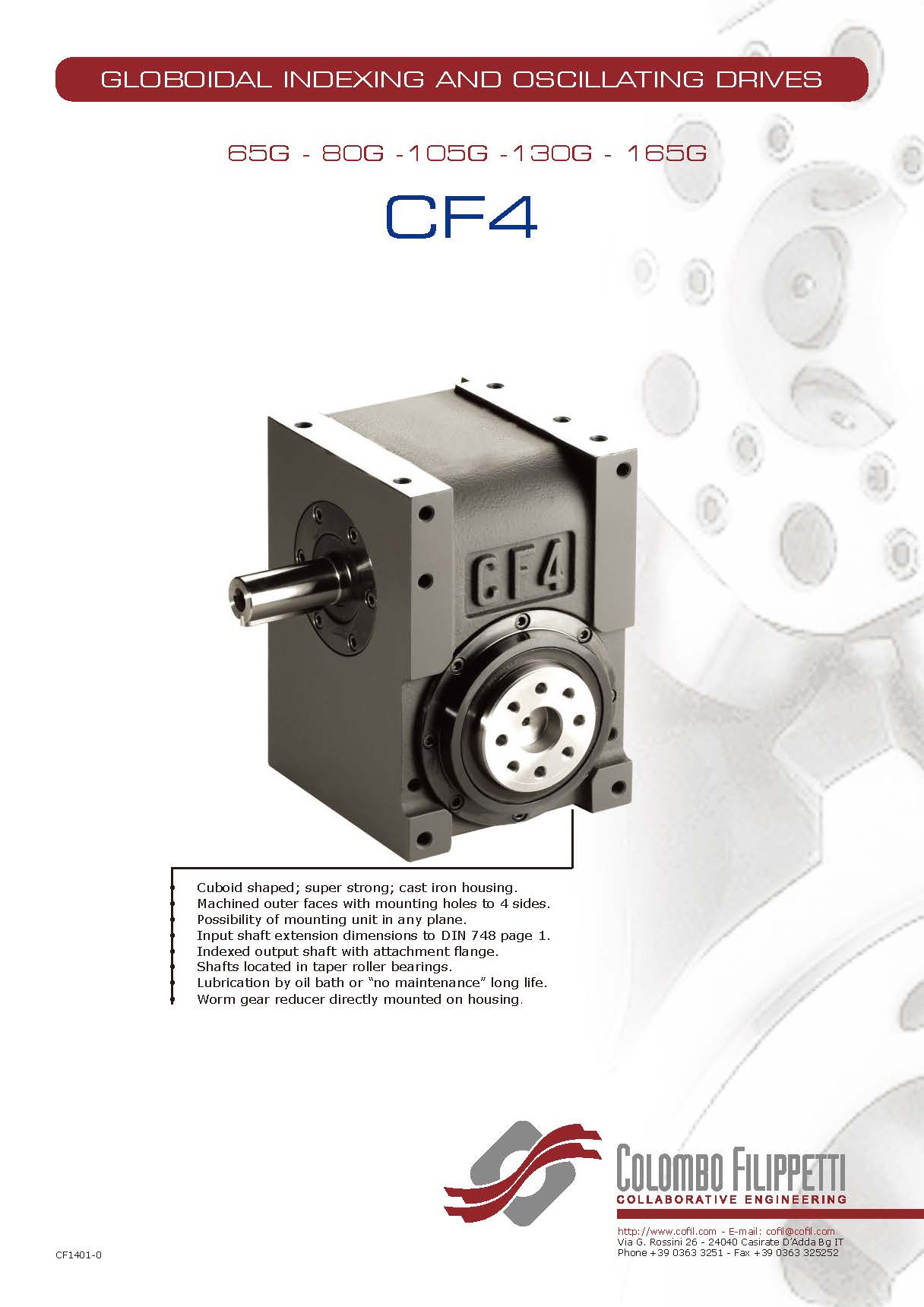 COLOMBO FILIPPETTI spa 的 CF4 振荡器驱动器是球形凸轮机构,用于将均匀的输入旋转运动转换为振荡输出运动。